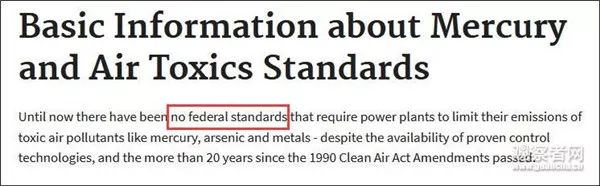 我國已有針對汞的細節排放標準,雖然美國有大體的減排目標,但EPA在其官網上寫道:目前美國的發電廠對于汞還沒有一個統一的排放標準。
