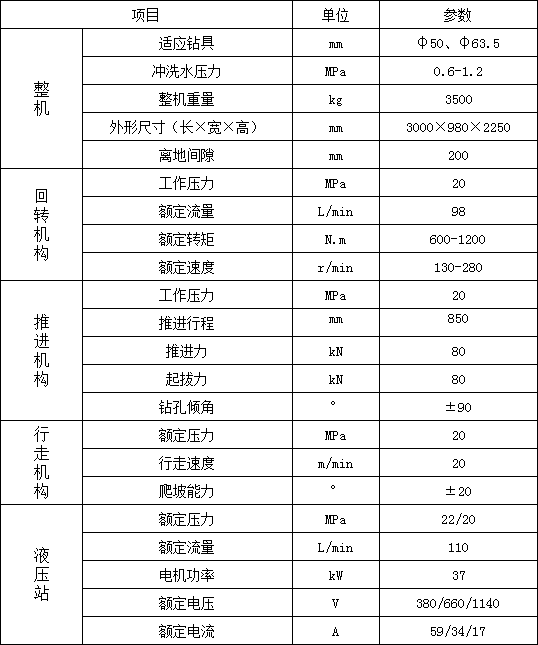 1. 履帶行走,大大提高移鉆、穩(wěn)鉆的效率,顯著減輕工人的體力勞動(dòng)強(qiáng)度;